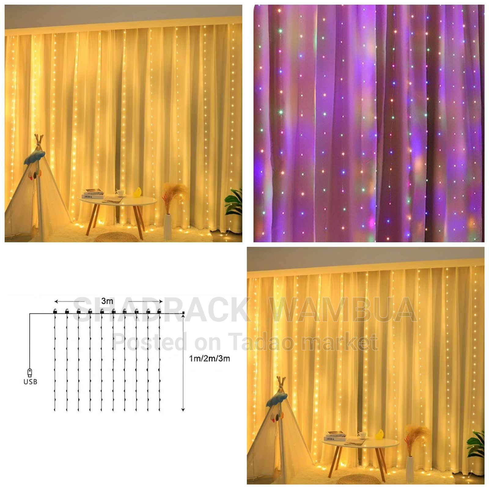 Tadao Market-Available sizes -Comes with remote and hooks -Available Colours: 3*1m warm or multicolored 3*2m warm only