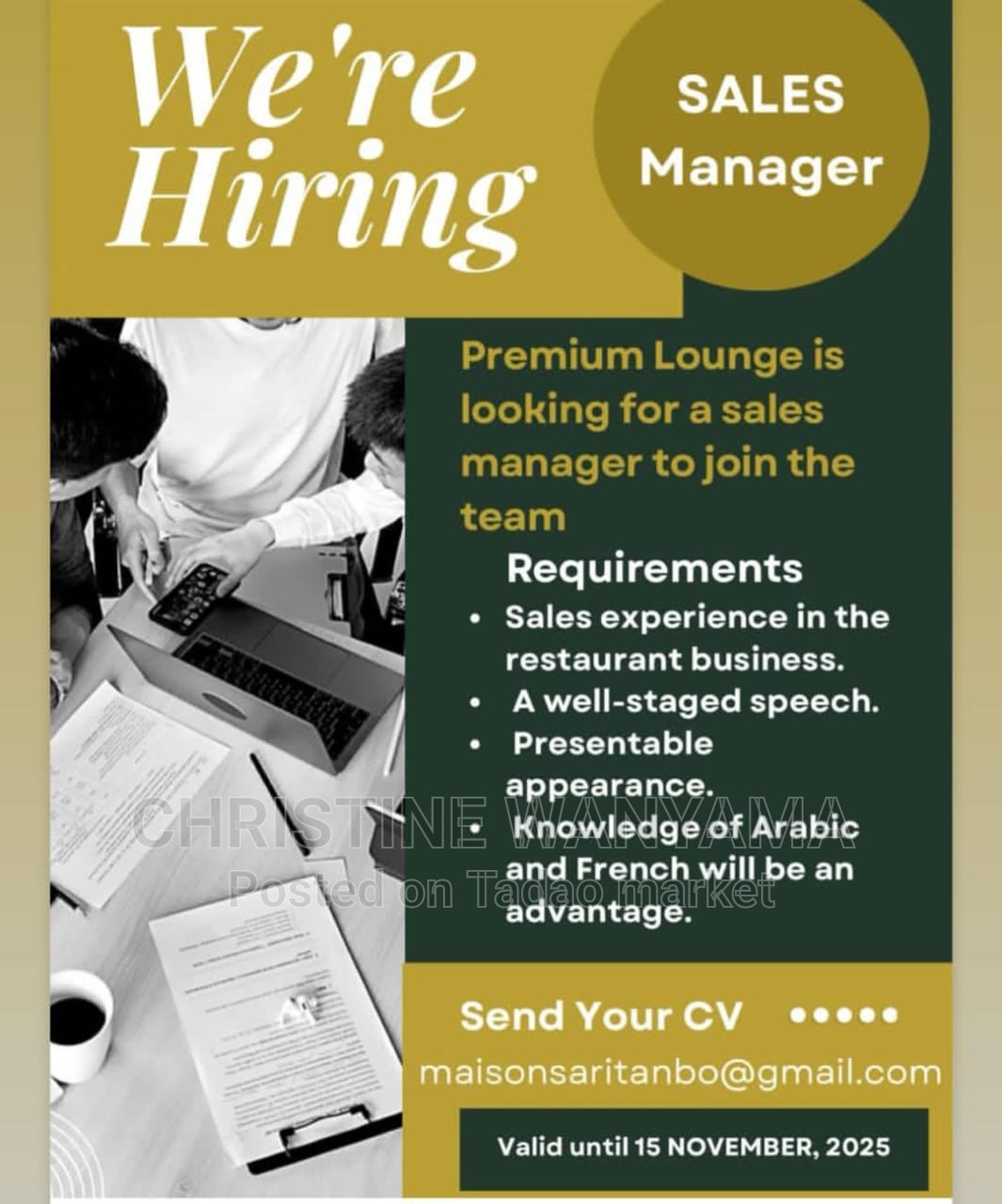 We are hiring sales manager